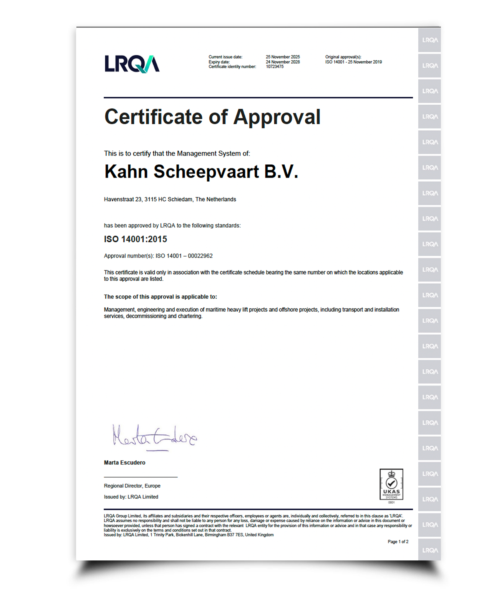 Our procedures are checked and audited by internal and external authorities on a regular basis, both on and offshore. Jumbo is proud to have received a number of internationally recognised certificates.